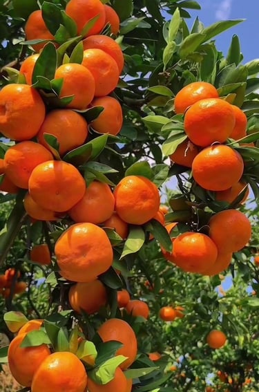 برتقال طازج وعصيري، غني بالفيتامينات.